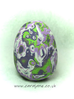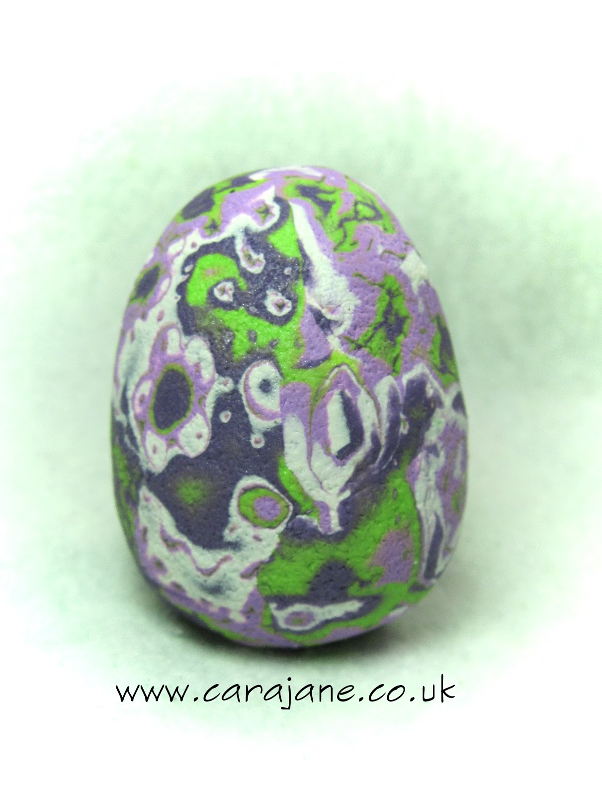 I’m thinking Easter. I’m thinking I don’t want to have to blow hundreds of eggs – it’s hard work! So I bought some children’s plastic eggs, the cheap kind that are meant for hiding sweets in so they are hinged, and oven tested them. Survived a baking so time to test covering them. Covered with a layer of scrap clay just to be sure, all seemed well.